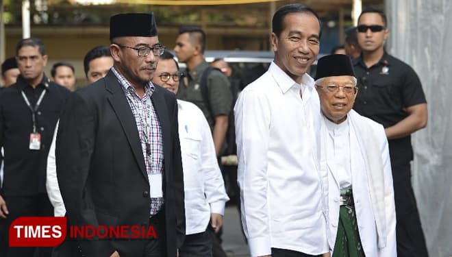 TIMES Magelang/Presiden terpilih, Jokowi, saat tiba di Gedung KPU RI, Minggu (30/06/2019). (FOTO: Hasbullah/TIMES Indonesia).